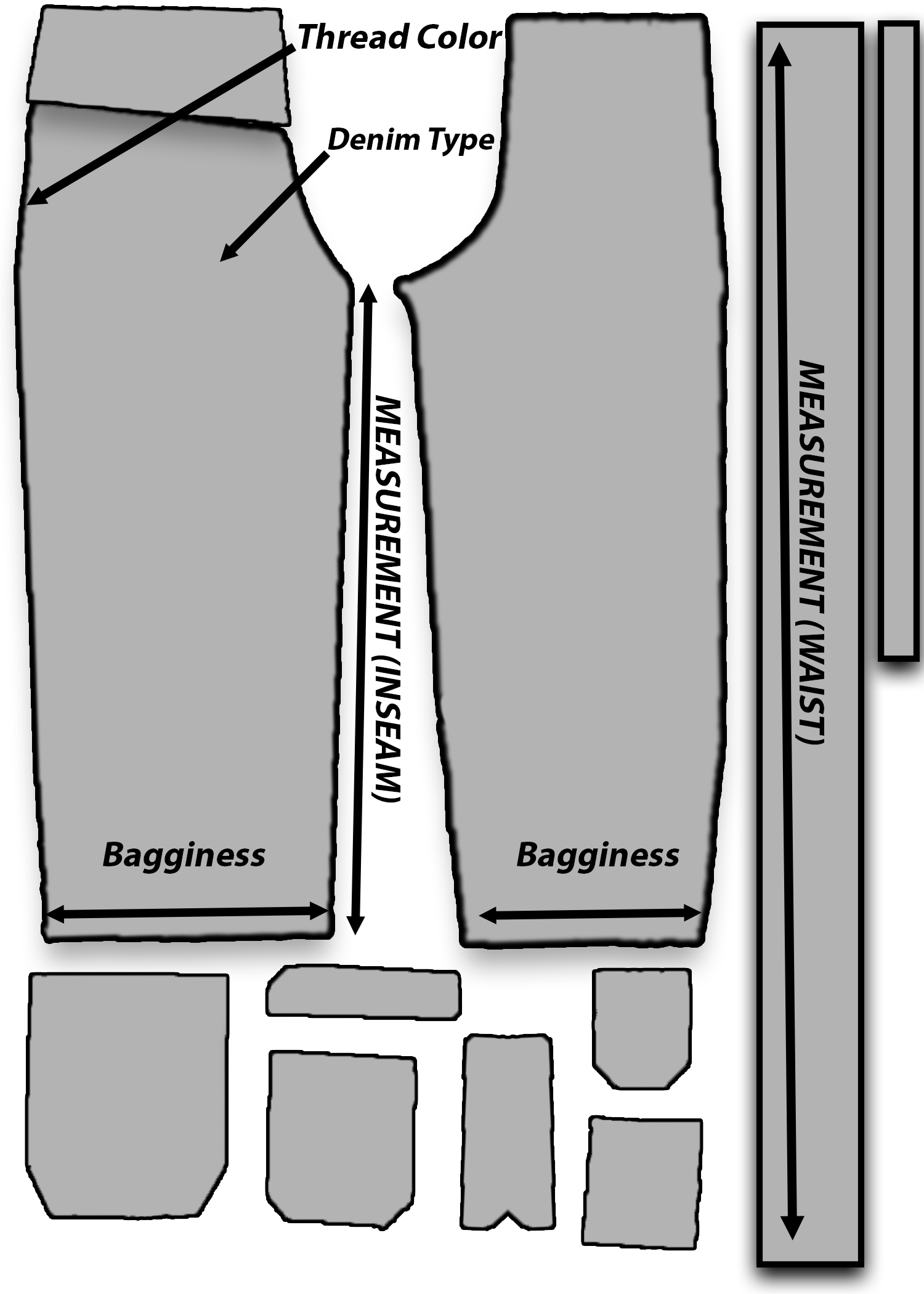 Components needed for Custom Jeans.