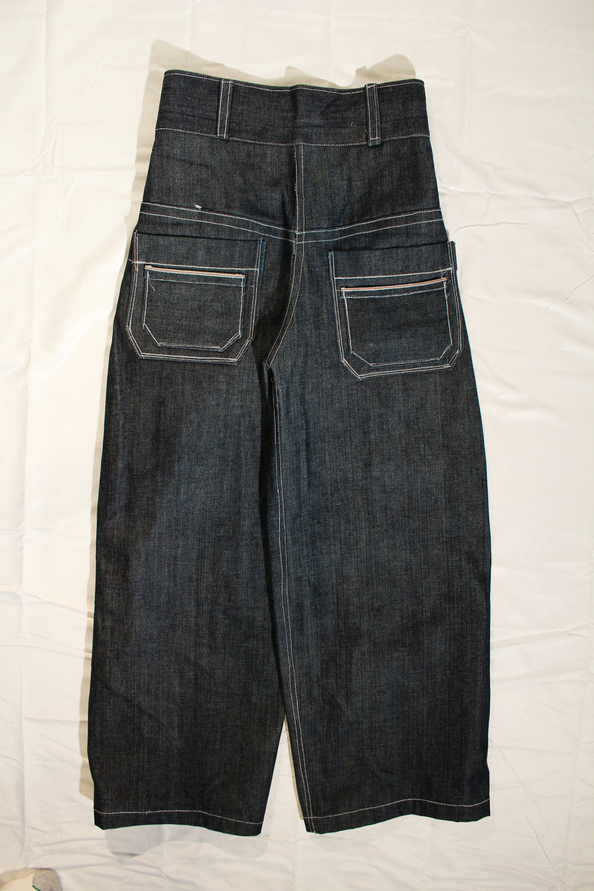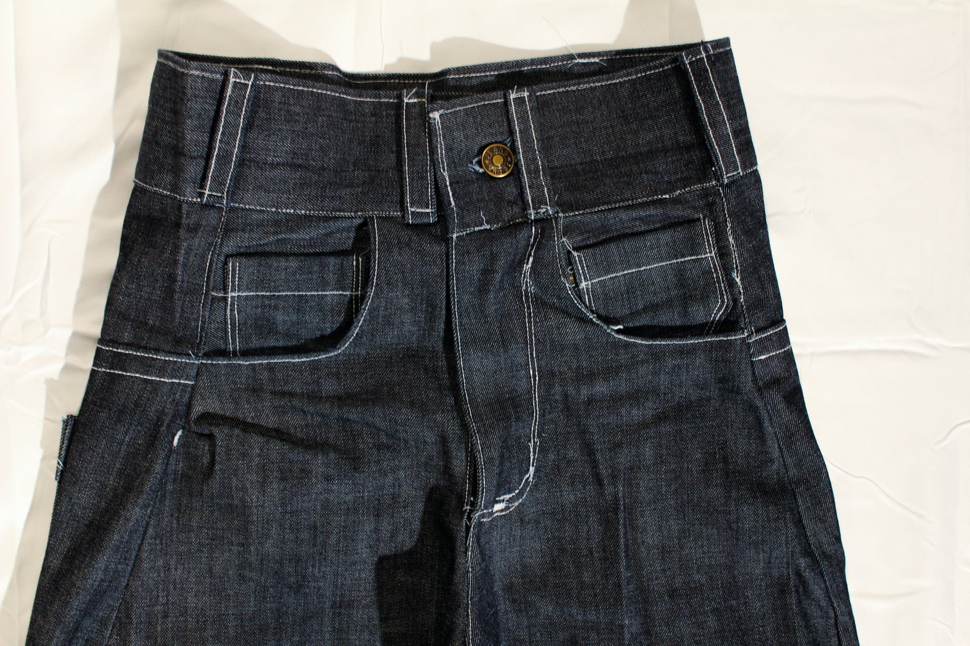 Designed to fit snugly on the waist and be relaxed and baggy towards the bottom, with a stiff feel that slowly wears in and forms around the body.